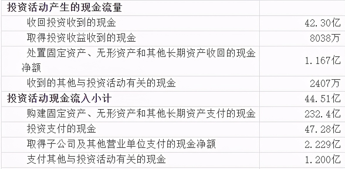 4、从投资现金流量表,看公司的战略与未来。
