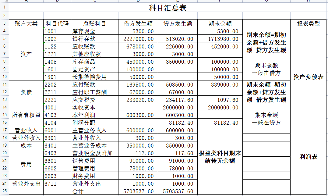 (7)存货=原材料+库存商品+委托加工物资+周转材料+材料采购+在途物资+发出商品+材料成本差异-存货跌价准备,根据各总账科目账的期末余额净额填列;